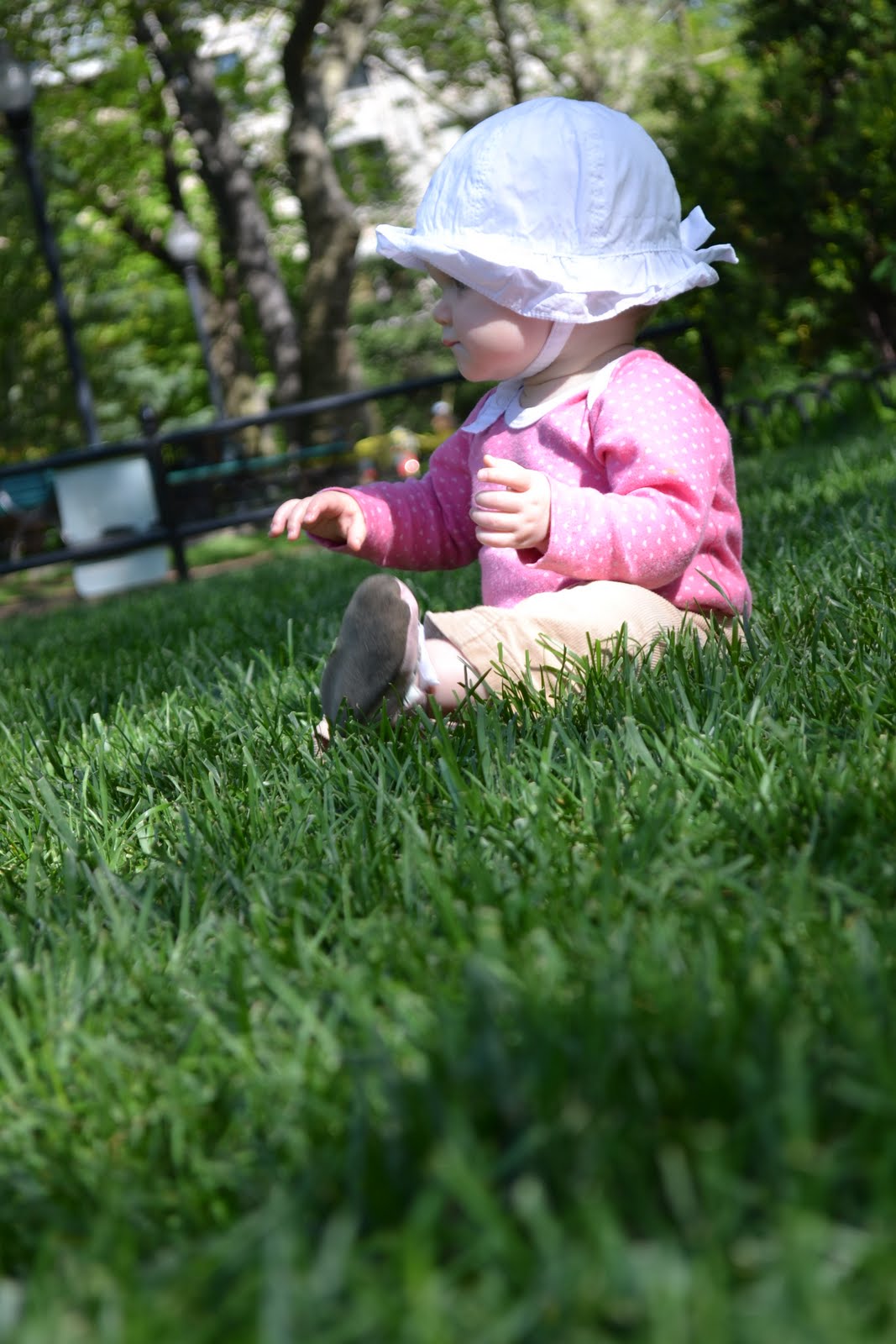 Bridget's favourite thing to do is go to the park by our house. She loves crawling around on our blanket and watching the other children, birds, squirrels and dogs. It is the perfect park for us because there are so many kids her age that also like to play there so she is constantly meeting new babies.
